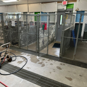 - cleaning, exercise, and dog handling are difficult due to layout and housing. It can be a safety issue for staff and animals and takes away staff time to interact positively with animals.